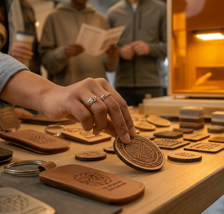 Lors de vos soirées ou évènements, offrez une animation de gravure laser en direct où votre marque est à l'honneur. Le bar à gravure suscite la curiosité et favorise les échanges entre vos invités.